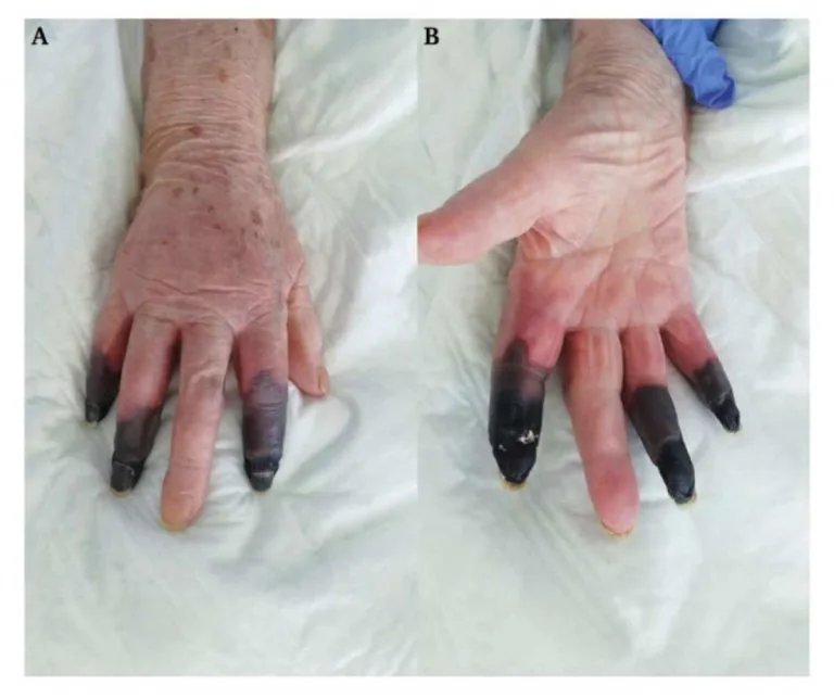 En el estudio nombran este suceso como ‘COVID fingers’ y detallan que la mujer tenía “gangrena seca del segundo, cuarto y quinto dedo de la mano derecha”, por lo que se procedió a amputarle los “dedos necróticos”.