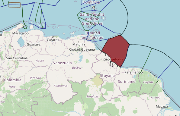 Los principales bloques de exploración y producción adjudicados por Guyana están dentro de lo que considera su Zona Económica Exclusiva, una proyección de 200 millas marítimas desde la costa.
