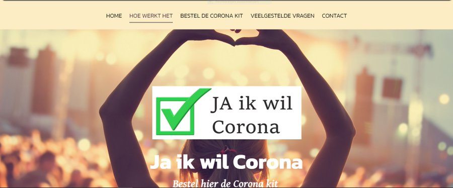 El 'corona kit' costaría 33,50 euros, según afirmaba la página web holandesa que ya no se encuentra operativa en Internet. El lema que sostenían era ''Sí, quiero corona''. En la página también decían: ''El virus que usted recibe no tiene más de tres meses, por lo que puede estar seguro de que también contiene las últimas mutaciones y variantes''.