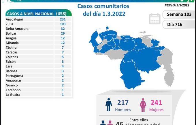 Venezuela reportó 458 nuevos casos de Covid-19 este 1° de marzo de 2022. Según reporte compartido por la Vicepresidenta …