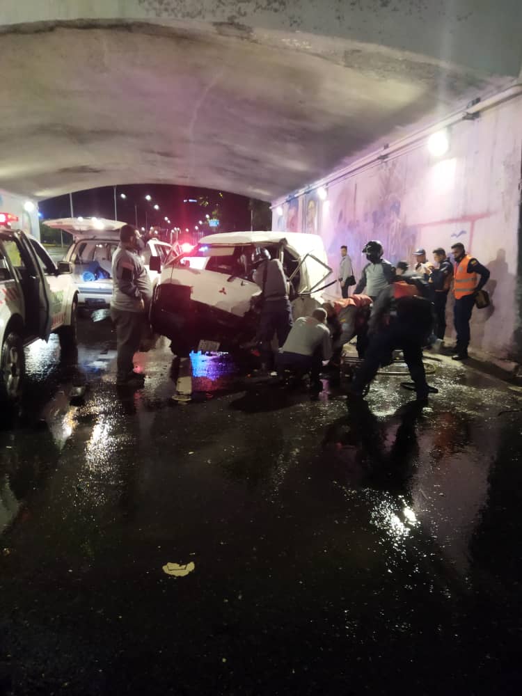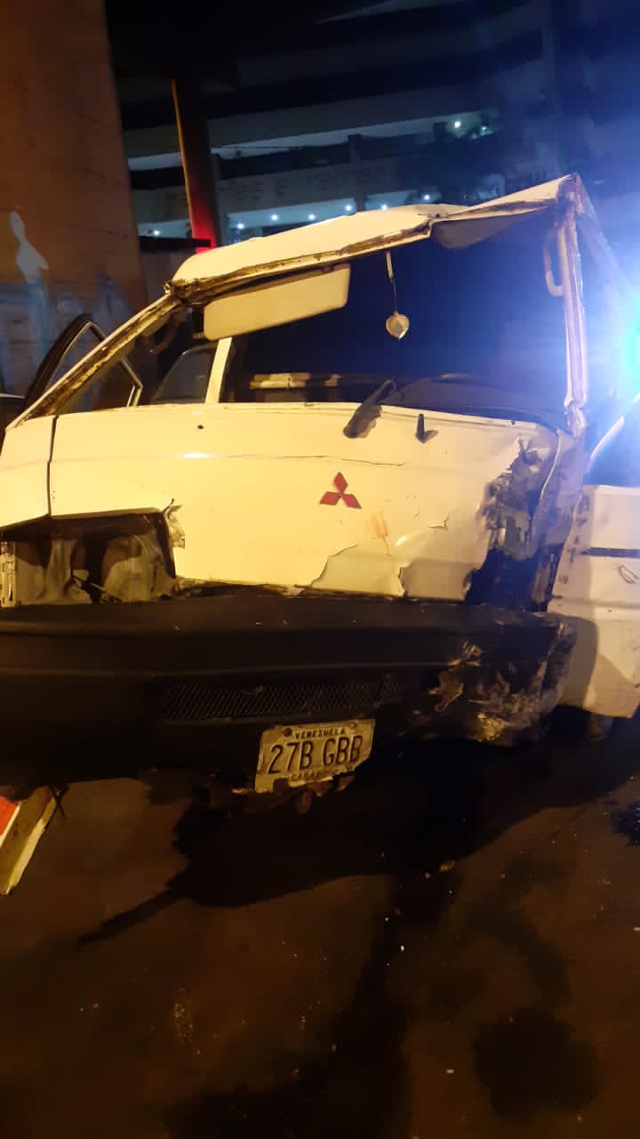 Este miércoles a las 11 de la noche se registró una colisión de vehículos en la autopista Francisco Fajardo a la altura de Plaza Venezuela. Uno de los carros se dio a la fuga a pesar de que el conductor de una Mitsubishi Panel color blanca quedó atrapado entre los amasijos de hierro y severamente herido.