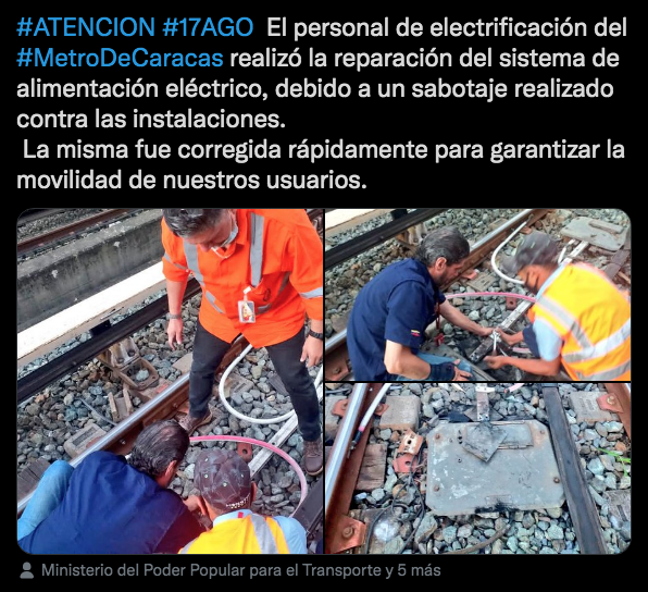 Asimismo, alegaron que se trató de un sabotaje realizado contra las instalaciones: "La falla fue corregida rápidamente para garantizar la movilidad de los usuarios".