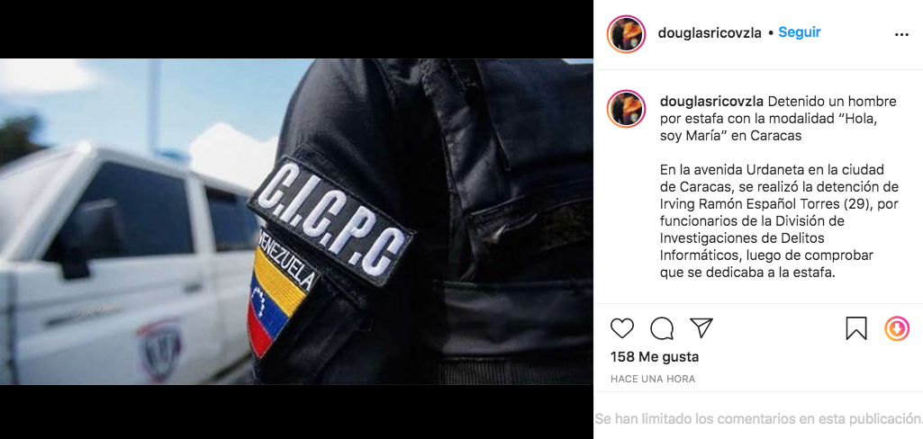 Un hombre fue detenido en la avenida Urdaneta, Caracas, tras ser vinculado con la estafa electrónica "Hola, soy María".